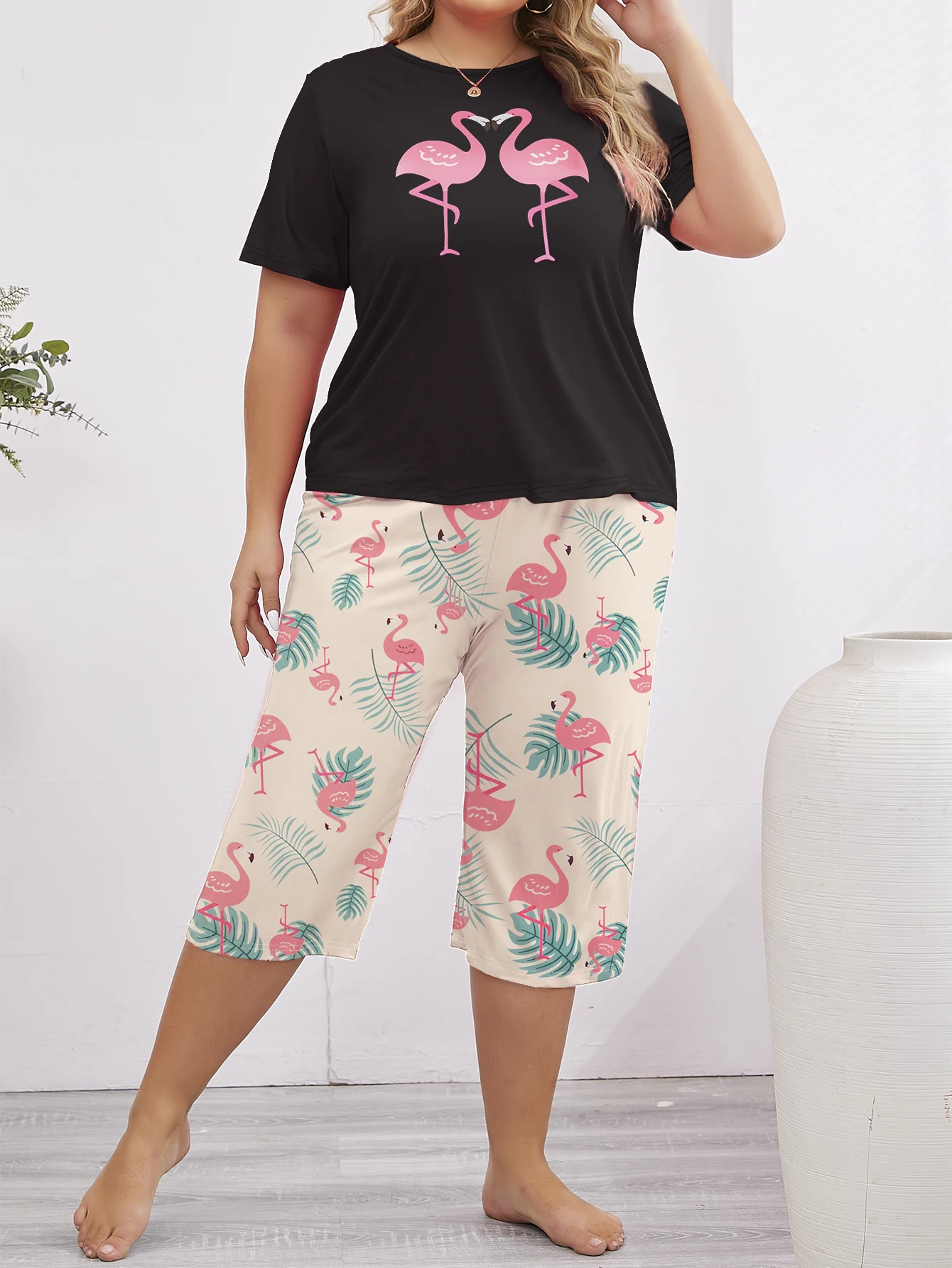 Bring a touch of tropical charm to your evenings with this playful plus size sleepwear set. Featuring a cute flamingo print and a relaxed fit, this two-piece set is designed for maximum comfort and style. Perfect for lounging or sleeping, it keeps you cozy while adding a pop of fun to your nighttime wardrobe.