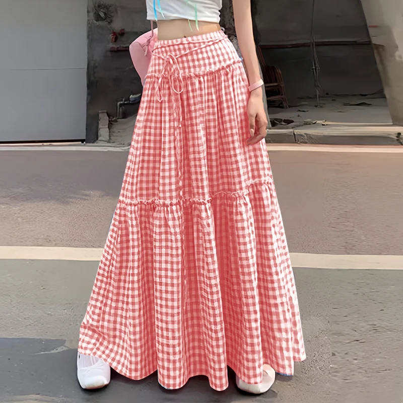 This gingham maxi skirt brings a timeless charm to your wardrobe. With its high-waist fit and flowing A-line silhouette, it creates a flattering and relaxed look that works for casual outings, picnics, or weekend strolls.