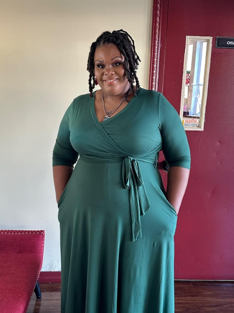 This dress is a dream come true for curvy girls! The fabric is soft, stretchy, and super forgiving. I love how it drapes without being too clingy. It’s flattering, comfy, and makes me feel really feminine. Total win!